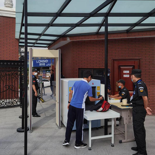 在該校的校門口可以看到學生們按時返校上課,有秩序地排隊配合學校進行安檢工作。目前已經配置了安檢門、安檢機將對所有入校人員、物品須經安檢后方可入校,嚴查收繳各類管制物品( 易燃易爆、腐蝕性、毒害性、感染性、放射性等危害物品;管制刀具、火種、煙酒、手機等違禁物品),確保危險、違禁物品不進入校園。如果學生攜帶手機,將統(tǒng)一存放指定保存柜內,周末取出帶回。